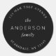 Adesivo Redondo Clássico com Nome da Família Preta e Endereço apresenta o sobrenome e endereço da sua família em branco sobre um fundo preto. Confira os itens de casamento correspondentes https://www.zazzle.com/collections/119930609931325936