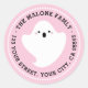Adesivo Redondo Endereço de retorno de Halloween rosa fantasma bon