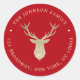 Adicione um toque de elegância ao seu correio com este Adesivo Redondo Clássico de Endereço de Retorno de Natal Ouro Luxuoso Rena Vermelha. Com uma rena dourada brilhante em um fundo vermelho rico, é perfeito para cartões de Natal, presentes e envelopes.