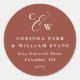Com um elegante e unindo duas iniciais, este simples design é o adesivo de endereço de retorno perfeito para coordenar com um clássico conjunto de convites para casamentos outono de terracota. Excelente como selo de envelope, este adesivo combina com a coleção de iniciais Design elegantes Lea Delaveris. O fundo de cor de ferrugem pode ser alterado clicando em "personalizar mais".