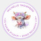 Adicione um doce toque final aos seus convites para chuveiros de bebês ou favores com este adorável adesivo floral de endereço de vaca redondo. Apresentando uma vaca fofa adornada com delicadas flores roxas, este charmoso adesivo é perfeito para selar envelopes, personalizar sacos de presentes, ou adicionar um detalhe personalizado à decoração do seu chá de fraldas. O tema da fazenda divertida combinado com sotaques roxos suaves cria um equilíbrio adorável de elegância e elegância. Tome seu chá de fraldas especial com esses adesivos exclusivos que certamente agradam aos seus convidados!