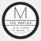 Adesivo Redondo Endereço e Monograma de Devolução Moderno | Preto
