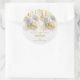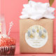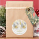 Um adesivo redondo apresenta seu nome comercial e saudação em letras quic acentuadas com um design de ornamentos de prata e ouro e flocos de neve. CORRESPONDENTE a itens na nossa coleção.