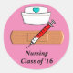 Enfermagem Classe de Estudantes de 2016 adesivos redondos. Grande atadura com seringa e design de enfermeiro. Faz um dom perfeito para a graduação.