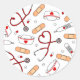 Enfermeira Adormece Impressão com Enfermeiro Hat, Estetoscópio Cardíaco, Bandagem e Medicação num Fundo Branco.