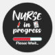 Adesivo Redondo Enfermeira em andamento carregando Enfermeira Engr