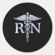 Adesivo Redondo Enfermeira Registrada RN Silver Caduceus a Preto