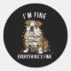 Adesivo Redondo English Bulldog Christmas I'm Fine Everything Is F