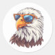 Adesivo Redondo Engraçada águia de desenho animado com óculos de s