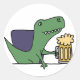 Adesivo Redondo Engraçado Bebendo de Dinossauro Verde T-Rex Beer