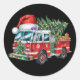 Adesivo Redondo Engraçado caminhão de bombeiro Santa Hat Luzes de