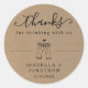 Engraçado Casamento de Cerveja Obrigado / Obrigados Sticker com fundo de kraft rústico - Um adesivo bonito para os seus favores de casamento.