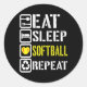 Adesivo Redondo Engraçado Comer Sono Softball Repete Jogadores de