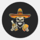 Adesivo Redondo Engraçado Crânio Mexicano Com Tacos E Cerveja