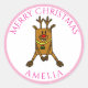 Engraçada e Bonita Veado Feliz Nome da Criança de Natal - Etiqueta de presente de Natal. Veado engraçado de desenho animado com nariz vermelho. O adesivo tem um modelo de nome - personalize o adesivo com seu nome. Feliz Natal está num moderno roteiro rosa.