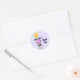 Obrigado, colante com uma lama branca soprando uma bolha rosa enquanto mascava chiclete. Vestindo uma coroa dourada e uma gravata arco preta. Fundo roxo claro.
