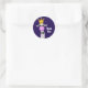 Obrigado, colante com uma lama branca soprando uma bolha rosa enquanto mascava chiclete. Vestindo uma coroa dourada e uma gravata arco preta. Fundo roxo escuro.