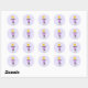 Um adesivo com uma lama branca soprando uma bolha rosa enquanto mascava chiclete. Vestindo uma coroa dourada e uma gravata arco preta. Fundo roxo claro.