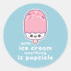 Um picolé de morango super fofo com rosto feliz e o trocadilho engraçado "com sorvete qualquer é picolé".