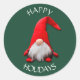 Este adesivo divertido do Holiday apresenta uma imagem fofa de um gnomo branco barbudo vestindo um chapéu vermelho de Papai Noel que cai sobre seus olhos. Acima e abaixo da imagem estão os campos de texto personalizados que dizem atualmente "feriados felizes". Engraçado para correspondência, cartões e muitos projetos de Feriado.