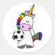 Adesivo Redondo Engraçado Unicórnio Jogando Cartoon