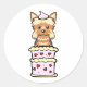 Adesivo Redondo Engraçado yorkshire terrier saltando de um bolo