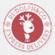 Este bonitinho adesivo redondo de Natal apresenta renas no meio com a imagem de texto "Rudolph & Co Express Delivery". Perfeito para presentes, etiquetas de presentes, envelopes de cartões de férias ou pacotes de Papais noeis.