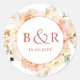 Um monograma elegante selante de envelope de casamento ou adesivo de favor com detalhes florais de cor d'água lindíssimos em uma bela mistura de pêssego, laranja, rosa-pincel, creme e matizes de champanhe. Centrar em branco com iniciais e segunda linha de texto em tom vermelho-alaranjado. Duas opções de tamanho e várias opções de forma a serem escolhidas. A linha de texto inferior pode ser usada para a data do evento, apagar ou, no caso de favoritos de evento, adicionar uma mensagem de obrigado curto (ou seja, "obrigado por vir". Parte da nossa coleção "Peach Floral Delight and Rust Orange" com uma variedade de produtos de coordenação disponíveis. Visite a coleção inteira em: https://www.zazzle.com/collections/peach_floral_delight_and_rust_orange-119930026374948611