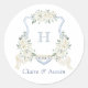 Adesivo Redondo Envelope Floral White Elegante Dusty Blue Crest
