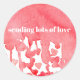 Adesivo Redondo Enviando muito amor corações vermelhos aquarela
