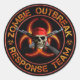 Equipe Zombie de Resposta a Surto, logotipo circular com símbolo de risco biológico, AK47s e crânio zombie.