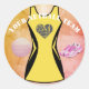 Vinheta redonda de design de bola de Netball com cor personalizada e nome do grupo. Escolha sua própria cor de vestido. Ideias personalizadas de presentes Netball.