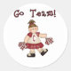 Uma cheerleader com uma saia vermelha e pom vermelho e texto que diz "Go Team" em T-shirts, canecas, sacos de tote, cartões, botões, adesivos e muito mais.