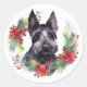 Adesivo Redondo Escócia Terrier Christmas Wreath Festivo Pup