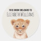 ilustração fofinha de leão personalizada com nomes de adesivos para crianças. Personalizável.