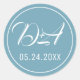 Adesivo Redondo Escrita legante iniciação do casamento azul