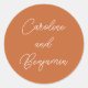 Adesivo Redondo Escrita Manual Moderna Casamento Queimado Laranja