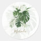 Adesivo Redondo Escrita Moderna Elegante De Folhas Tropicais