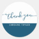 Adesivo Redondo Escrito Moderno Azul Escuro Branco Obrigado