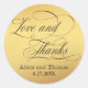 Um obrigado elegante que você coloca para favores de casamento, correspondência e muito mais, esta design apresenta uma bela letra de roteiro de caligrafia com florescimento sobre um fundo de ouro. Editar com seus nomes e data de casamento ou outro texto desejado.