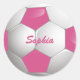 Adesivo Redondo Esfera de Futebol Personalizável, Rosa e Branco