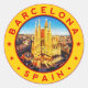 Crachá da Espanha de Barcelona. España, emblema do design de Barcelona com bandeira das Espanhas e Basílic a de la Sagrada Família.