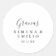 Este simples obrigado espanhol que o teu casamento a favor de um adesivo redondo clássico é perfeito para um casamento moderno. O design simples e elegante apresenta a tipografia de scripts clássicos e ricos em preto e branco. Faça com que a etiqueta do adesivo seja sua, incluindo seus nomes, o evento (se aplicável) e a data. Esses adesivos podem complementar uma recepção de casamento, chá de panela ou qualquer evento!