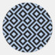 Esse padrão ousado azul claro e geométrico preto é um design ornamental original. Diamantes azuis pálidos com bordas pretas são cercados por meandros azuis bebês que os rodeiam. Os ziguezags pretos separam os caminhos azuis-claros e os diamantes em offset. Imagem criada digitalmente. Copyright © 2014 Claire E. Skinner. Todos os direitos reservados.