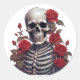 Adesivo Redondo Esqueleto com Rosas vermelhas