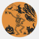 Adesivo Redondo Esqueleto Dançante e Vinheta Negra de Halloween