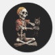 Adesivo Redondo Esqueleto Segurando Um Gato Preguiçoso No Hallowee