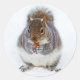 Foto retrato adorável de um esquilo de cinza capturado borbulhando uma noz na neve.