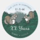 Aqui está um adesivo de aniversário de casamento que você pode personalizar! Dois esquilos de floresta ilustrados ficam entre ramos de pinheiros, com "Our Love is Evergreen" escrito em cima. Você pode adicionar uma data de casamento, número de anos juntos, e dois nomes para fazer disso um presente totalmente personalizado!