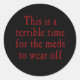 Adesivo Redondo Esta é uma hora terrível para os remédios vestirem